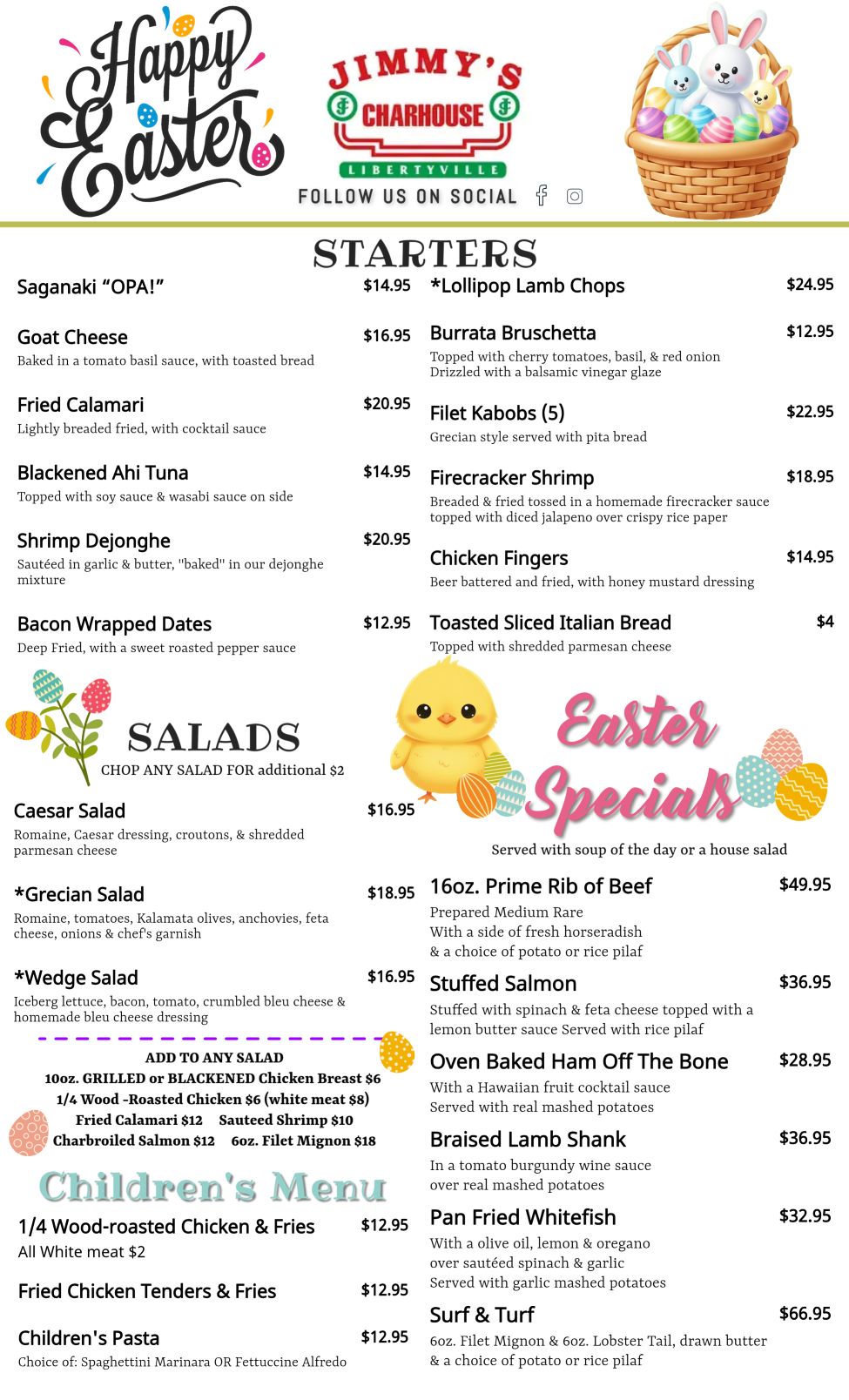 MAKe a Reservation Today 847-549-9900Starters